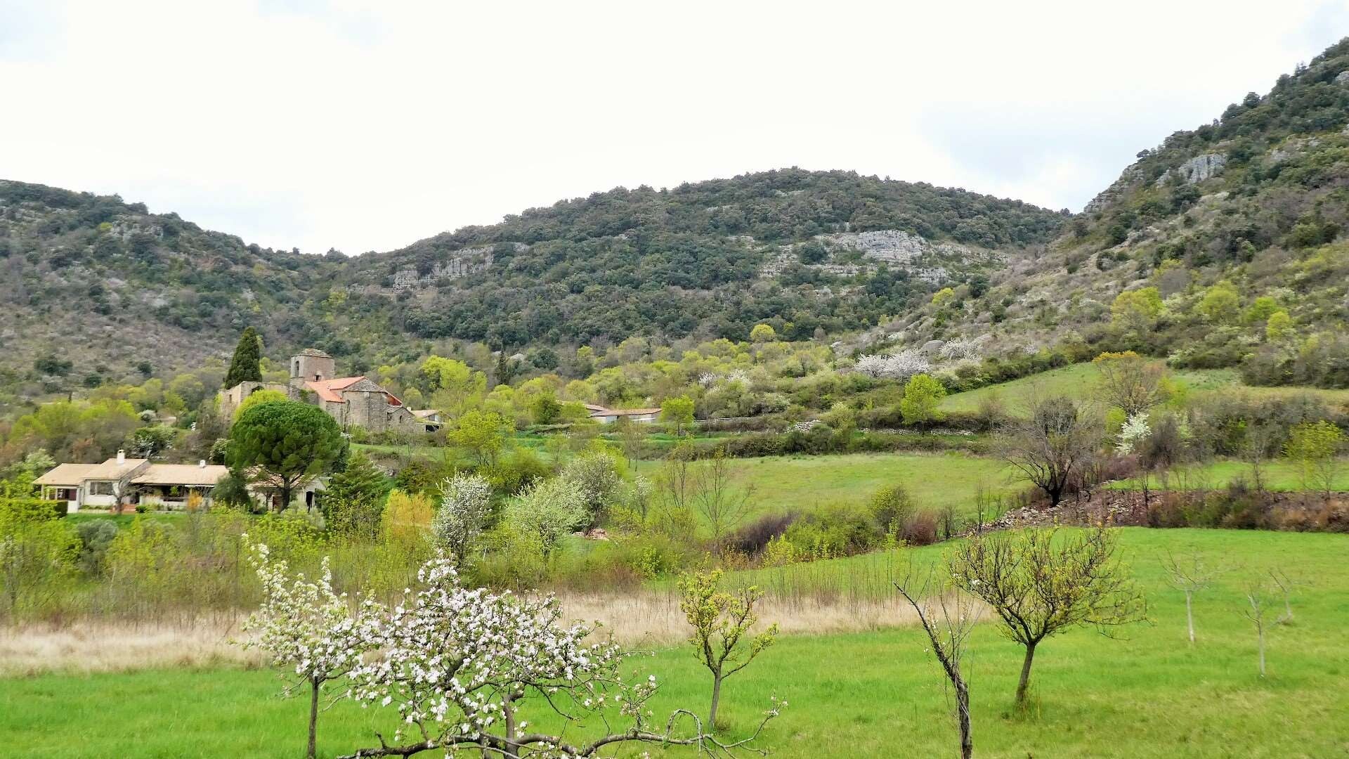 Au départ du parking, situé sous le château de Dio, nous prenons le parcourt, en sens inverse afin de monter sur le plateau par le chemin le plus "raide". La montée très "caillouteuse", nous emmène aux pieds des éoliennes qui tournent sous le vent fort du Sud/Est . La traversée du plateau est plutôt fraiche, jusqu'au changement de direction dans un bois de pin noir. Sortie du bois, coté sud, nous avons une très belle vue sur les avants-monts. A la croix de "Dio", qui domine le village, s'ouvre une vue imprenable sur le village et aussi sur son magnifique château.