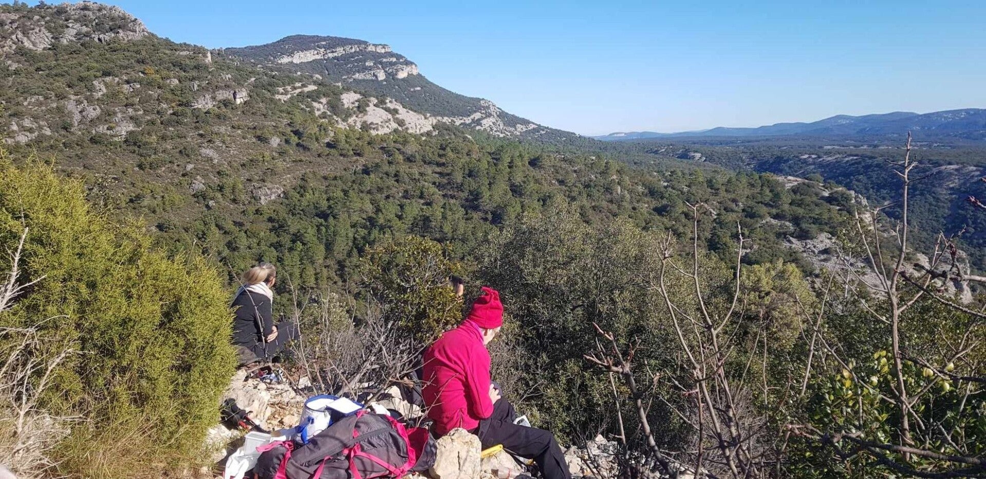 Nous décidons donc , vu la météo très clémente de faire la pause pique-nique sur un rocher en plein soleil avec vue sur le roc de la vigne avant d'atteindre la chapelle.