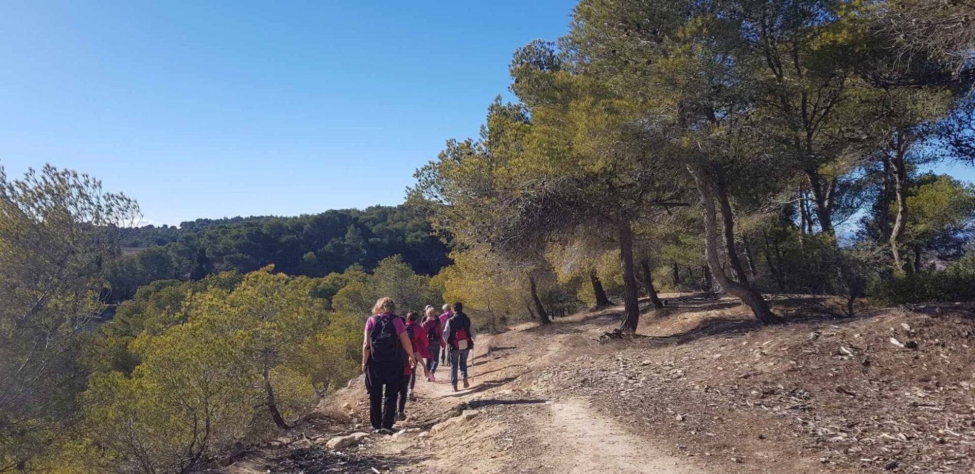 Après avoir emprunté un sentier, nous allons vers un plateau et nous traversons des vignes, ensuite, une pinède et nous rejoignons le parking.