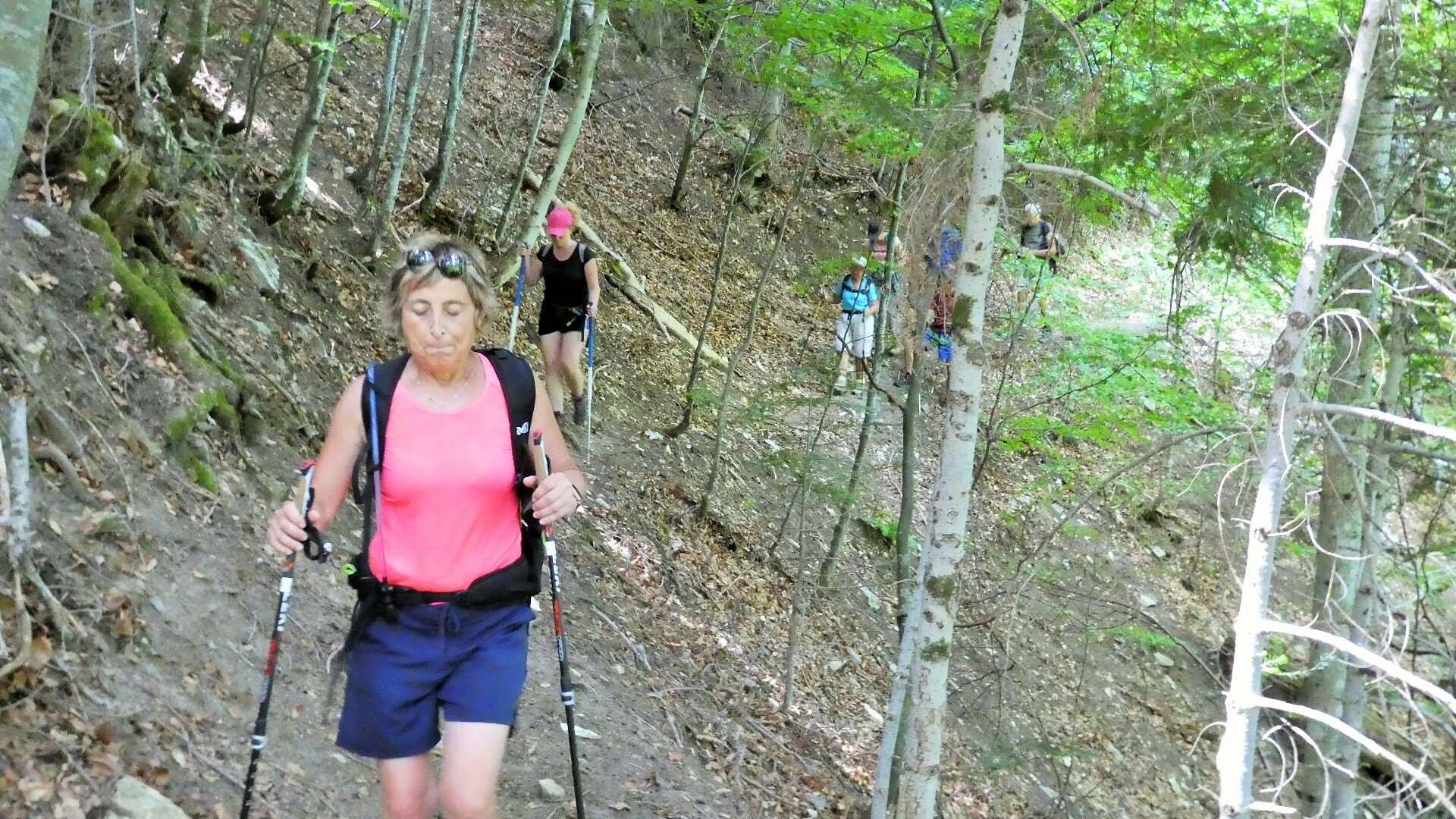 J M, a de ce fait, modifié son circuit à travers prairie et sous-bois. Le casse-croute et le repos terminé, la descente vers Borne, c'est passé sans encombre, même si certains passages étaient dans l'inconnu. Jolie rando, plus cool que les journée précédentes, que nous avons terminée vers 14 h.