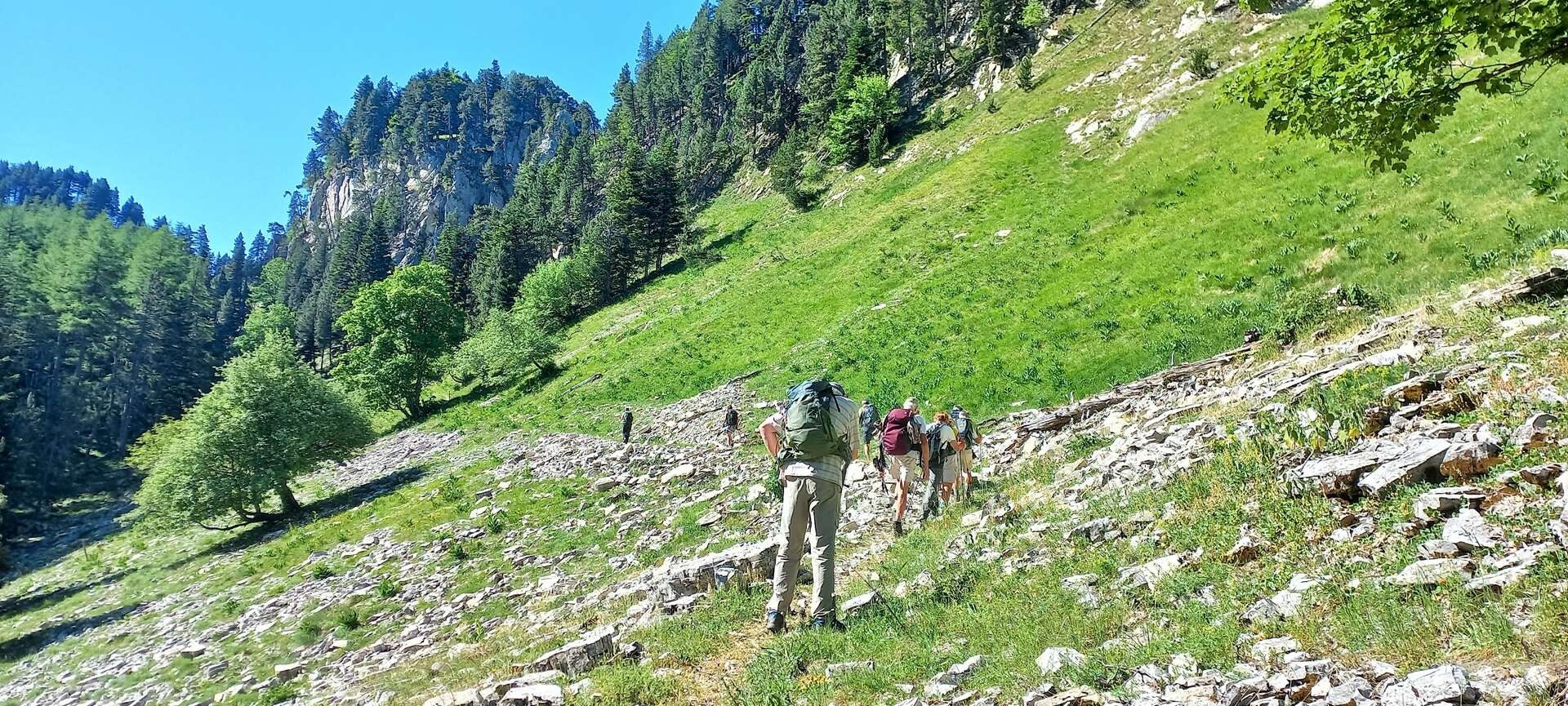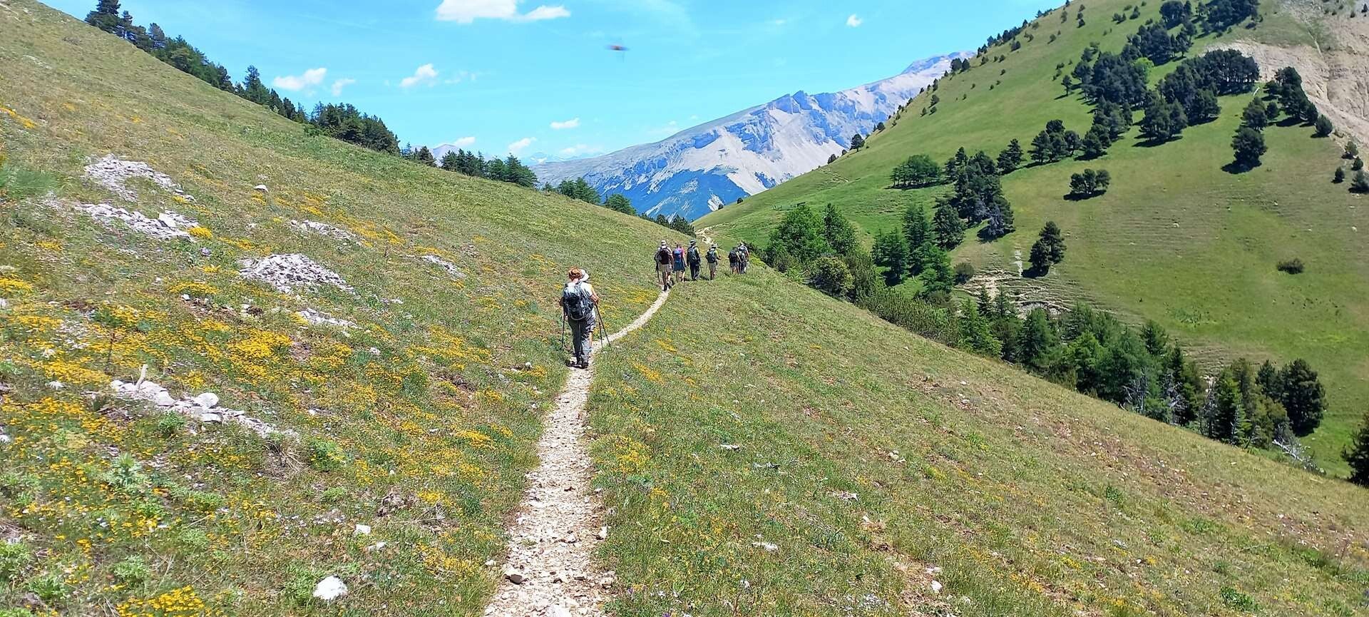 Cette belle sortie nous fait découvrir les montagnes de Lus. La pointe 1553m au-dessus de Montama est un splendide belvédère sur le Dévoluy. Un secteur d’alpage authentique aux odeurs de lavandes. Depuis ce point nous poursuivons pour rejoindre les rondeurs panoramiques du sommet du Quigouret.UNe partie du groupe préfère attendre en bas. Le vue s'ouvre au loin et les panoramas donnent sur le Diois, le vercors et, au sud, jusqu’au Mont Ventoux.