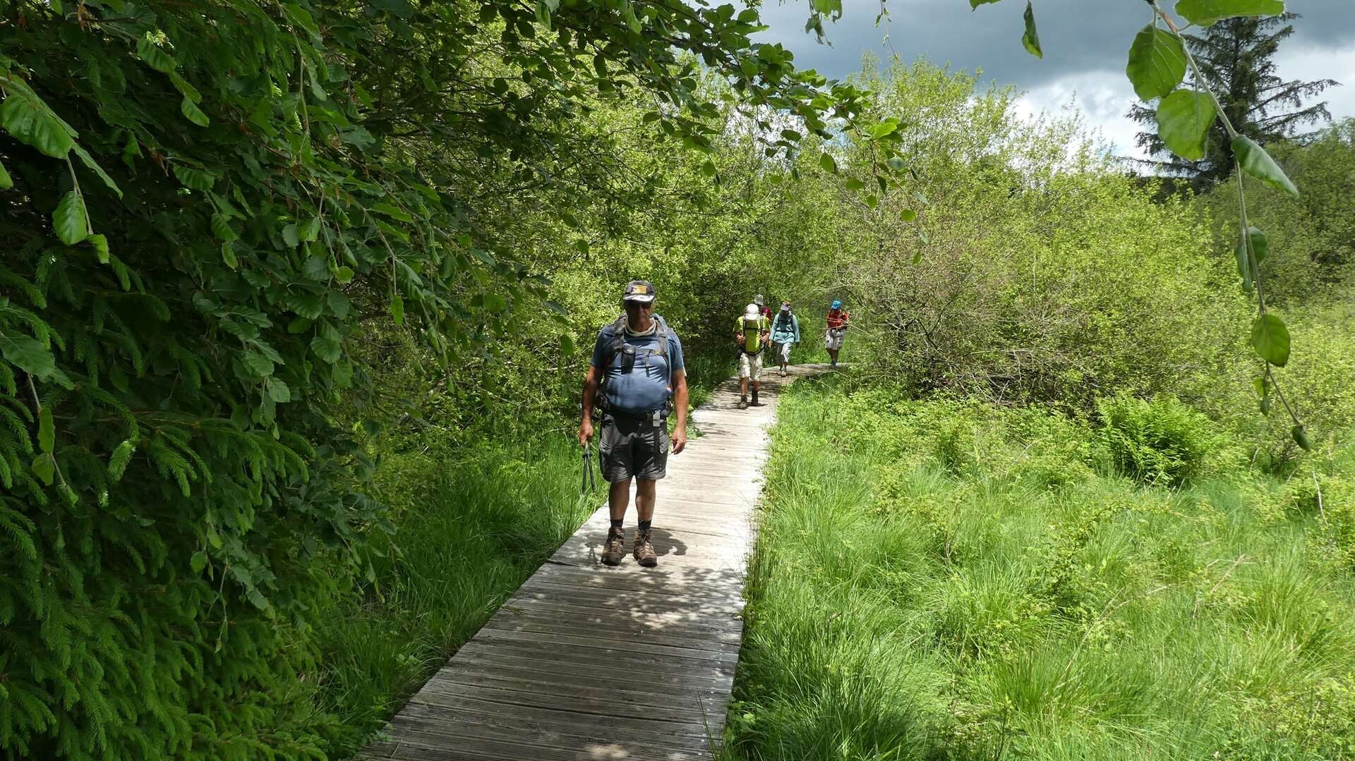 Pour moi, c'est dernière randonnée à la journée de la saison. Ce circuit en majeure partie ombragée est super agréable. Avec, dans un premier temps, la montée du "sentier des légendes" jusqu'au barrage. Ce tronçon nous a offert de superbe point de vue, avec en particulier la montée et les cascades de" sentier des milles marches". La partie suivante, le tour du lac par les berges, est plus plate et a un certain charme. Le lac, est à un niveau étonnamment, haut. C'est en bordure que nous prendrons notre pique-nique. Le retour, par une zone marécageuse, se fait sur des passerelles . Ensuite, nous sommes rentrés dans la zone bossée pour rejoindre le point de départ.