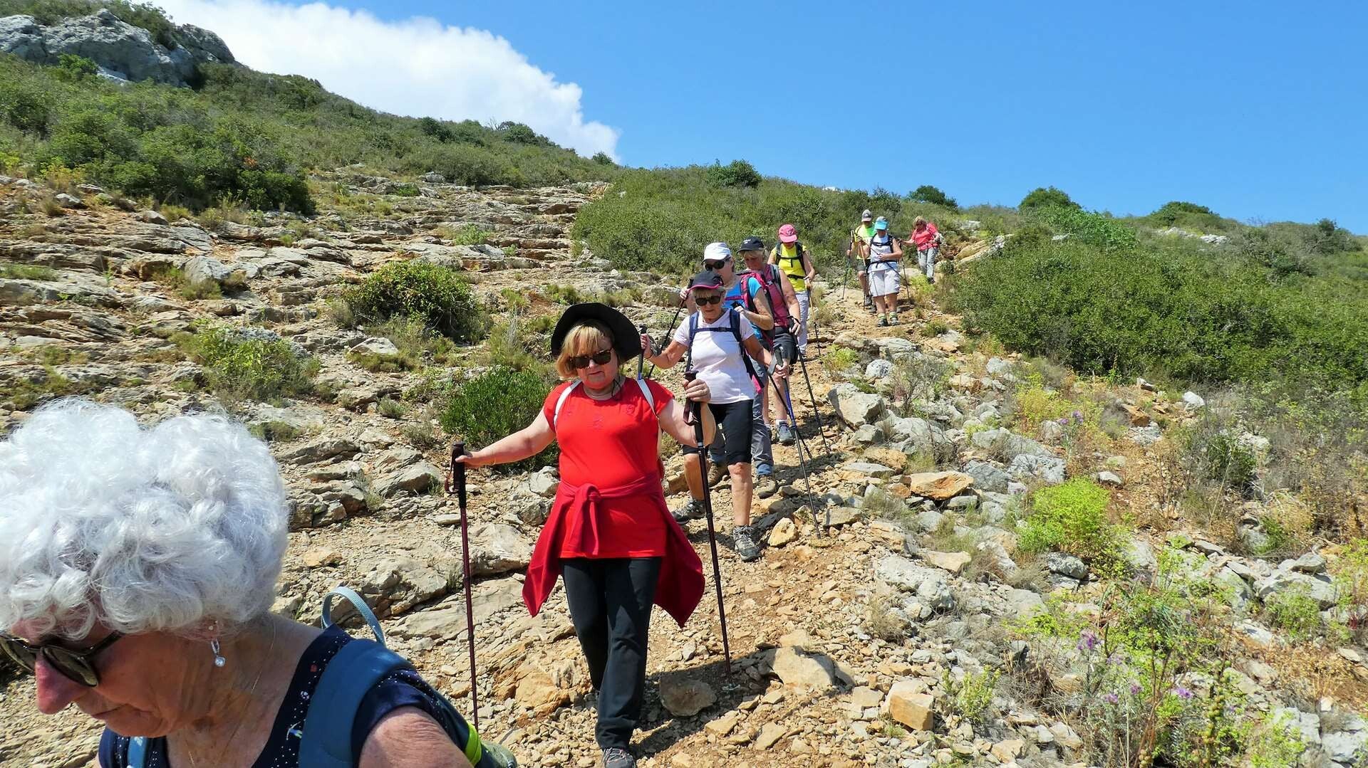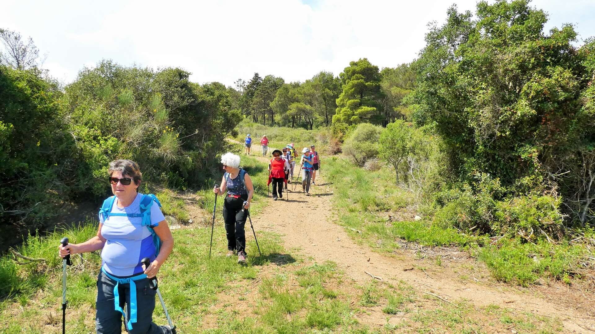 Le parcours sera varié, pistes, ou sentes, le tout en milieu Méditerranéen. Un petit coté sportif, nous conduira par avec une forte descente suivie de la remontée vers une grotte. Au retour, la vue sur l'abbaye, donne une vue sur sa rosace, au travers de l'arc-boutant central de son Cœur.