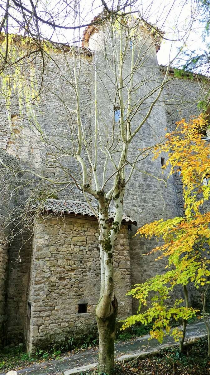 C'est par des chemins et des sentiers couverts de feuilles mortes que nous progresserons aujourd'hui. Au début, nous serons dans le paysage rocheux ruiniformes du Larzac. Nous descendrons ensuite dans la vallée de la Sorgues ou nous croiserons sur notre passage son magnifique château puis, un peu plus bas, sa résurgence d'eau limpide, que nous trouverons en faisant un court crochet. Les sentiers et les arbres ont la même couleur dorée. L'automne à fait son magnifique travail. Des vaches "Aubrac" et leurs veaux, nous regarde passer. Après le repas, chose que j'évite en règle générale, nous devrons gravir le dénivelé, 29/30%, de la journée.