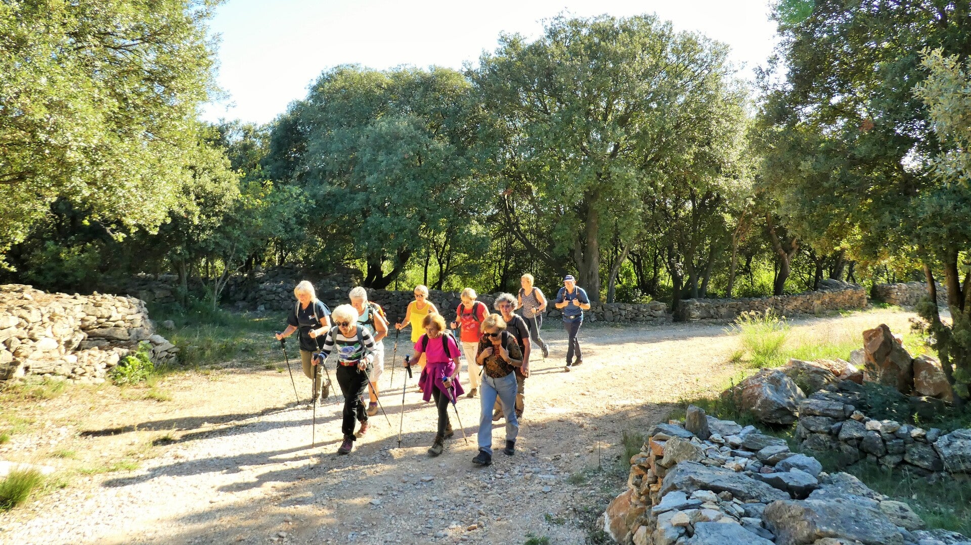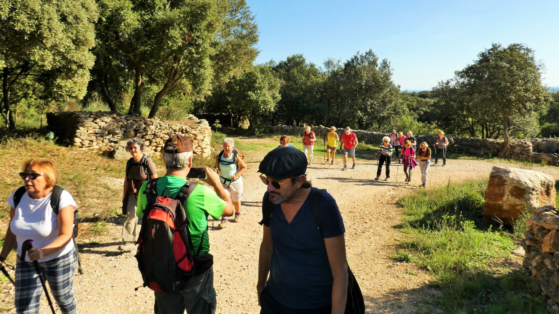 La descente se fait par des sentiers bordés de murets de pierres sèches, et la suite de cette randonnée dans la partie viticole de Faugéres, ne présente aucune difficulté particulière