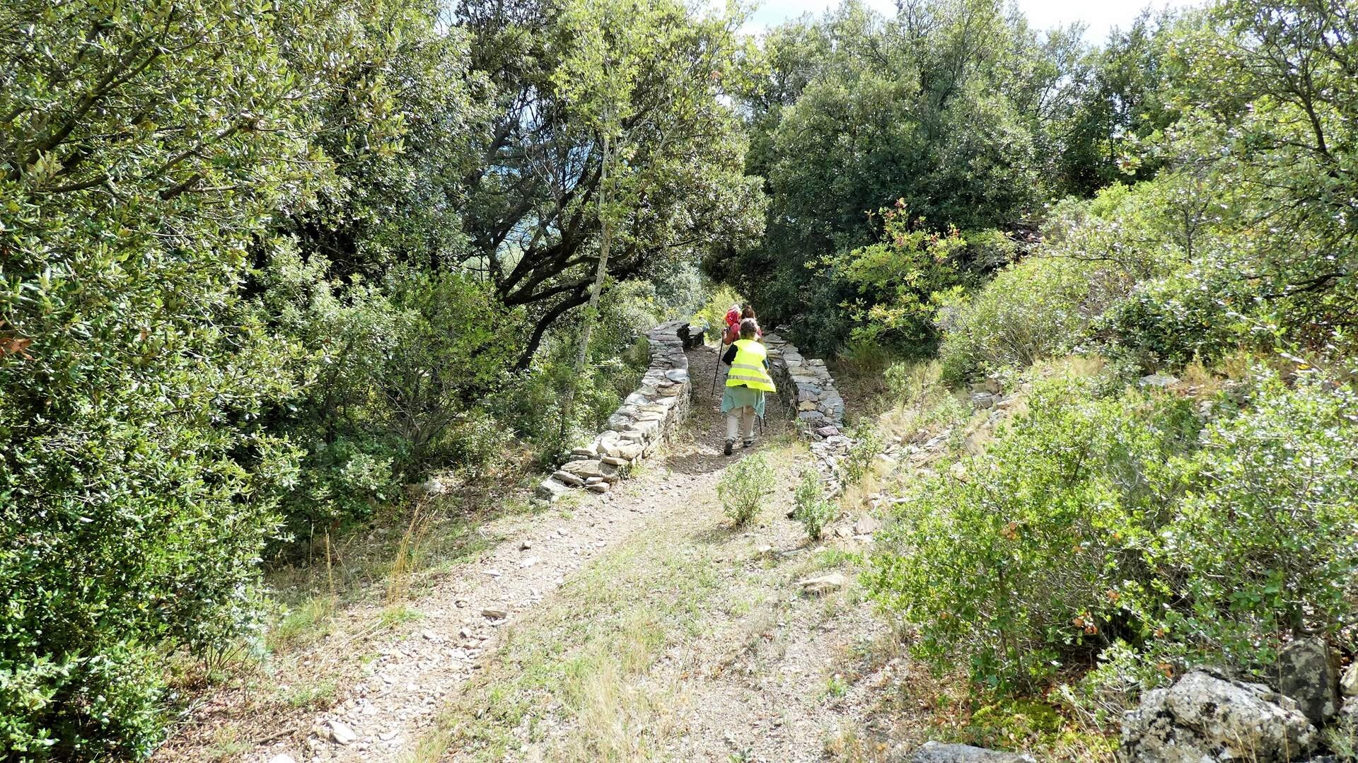Passage obligé par la passerelle qui enjambe le petit ruisseau des Merlaux . Nous suivons la route des Rivières sur 900m avant d'attaquer la première montée de la randonnée jusqu'à la ferme de Brama. Petit à petit nous montons jusqu'au plateau de la Planette. Au passage nous avons une vue sur la carrière de marbre des Bessous (les jumeaux en occitan). On y exploitait un marbre d'excellente qualité: du turquin ou grillotte (cœur de pigeon), pas de veines rouges et blanches comme à Caunnes Minervois, mais des sortes de taches rouge sang. L'apogée de son exploitation fut XVII au XVIIIème siècle.