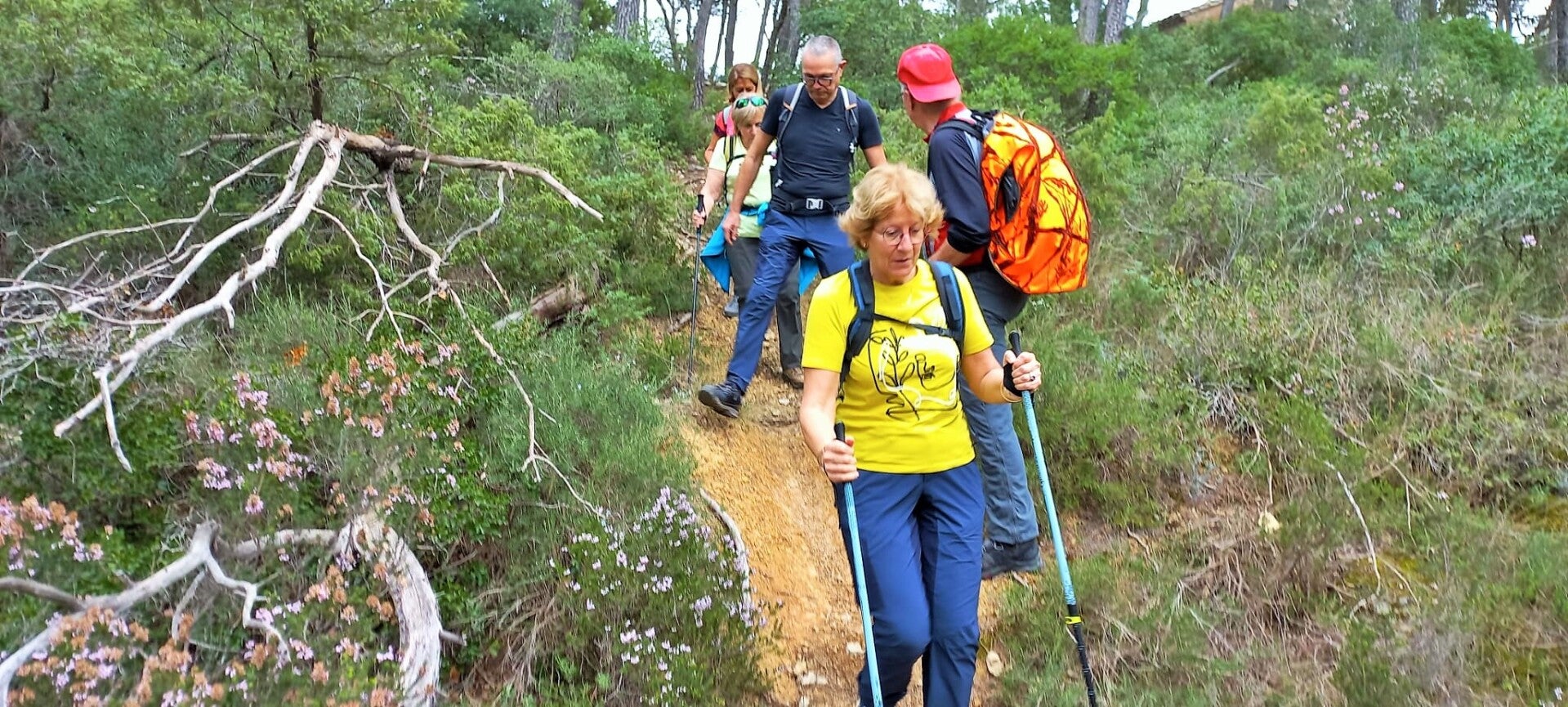 Une randonnée au milieu des terres rouges , de la garrigue, des pinèdes fleuries par la bruyère et bien évidemment les vignes. Nous croiserons sur notre passage, trois sculptures qui célèbre la vigne et plus loin une autre sculpture, plus contemporaine, et plutôt inattendue. Notre première découverte sera La chapelle St Nicolas de Talpuciac, nichée au milieu des pins. Un peu plus loin, c'est "l'étendoir des fées", que nous découvrirons. Une zone rocheuse chargé de légende. Il est dit que les fées sortaient la nuit pour laver leur linge et l'étendre sur ces roches curieuses. (un peu comme Jean Louis qui a étendu son mouchoir)