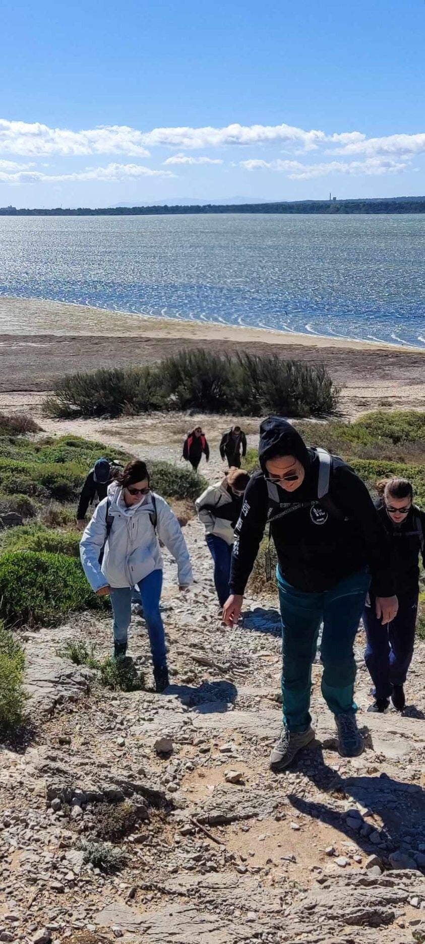 C'est un sentier sauvage en bordure des étangs de l'Ayrolle et de Campignol, entre grève et falaise rocheuse, d'où la vue s'étend au delà de Narbonne au Nord et jusqu'aux Pyrénées au Sud.